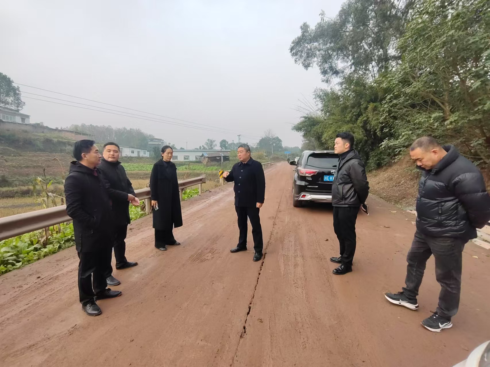 12月30日上午,集團(tuán)公司董事長黃寧到瀘縣x083太合路太伏至萬定段檢查項(xiàng)目施工情況,要求施工單位攻堅(jiān)克難,加班加點(diǎn)趕施工進(jìn)度,做好保通保暢相應(yīng)措施;并增設(shè)安全警示標(biāo)識標(biāo)牌,確保行車和行人安全,集團(tuán)公司綜合部、城投公司、龍興公司參加。